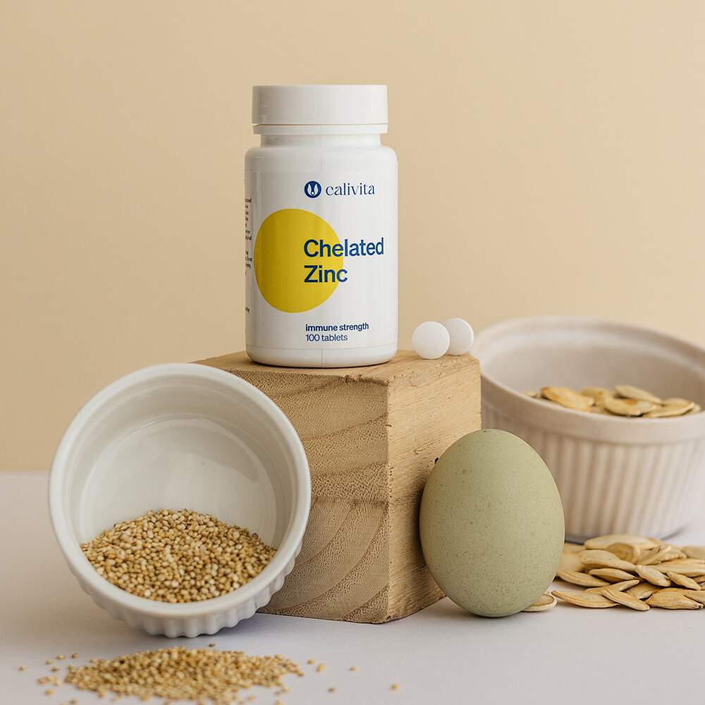 Calivita Chelated Zinc este un supliment alimentar cu zinc în formă chelată, conceput pentru a furniza 15 mg de zinc organic pe tabletă într-o formulă cu biodisponibilitate optimă și absorbție eficientă. Zincul este un mineral esențial implicat în peste 300 de procese enzimatice din organism, fiind important pentru funcționarea normală a sistemului imunitar, metabolismul celular și buna funcționare generală.