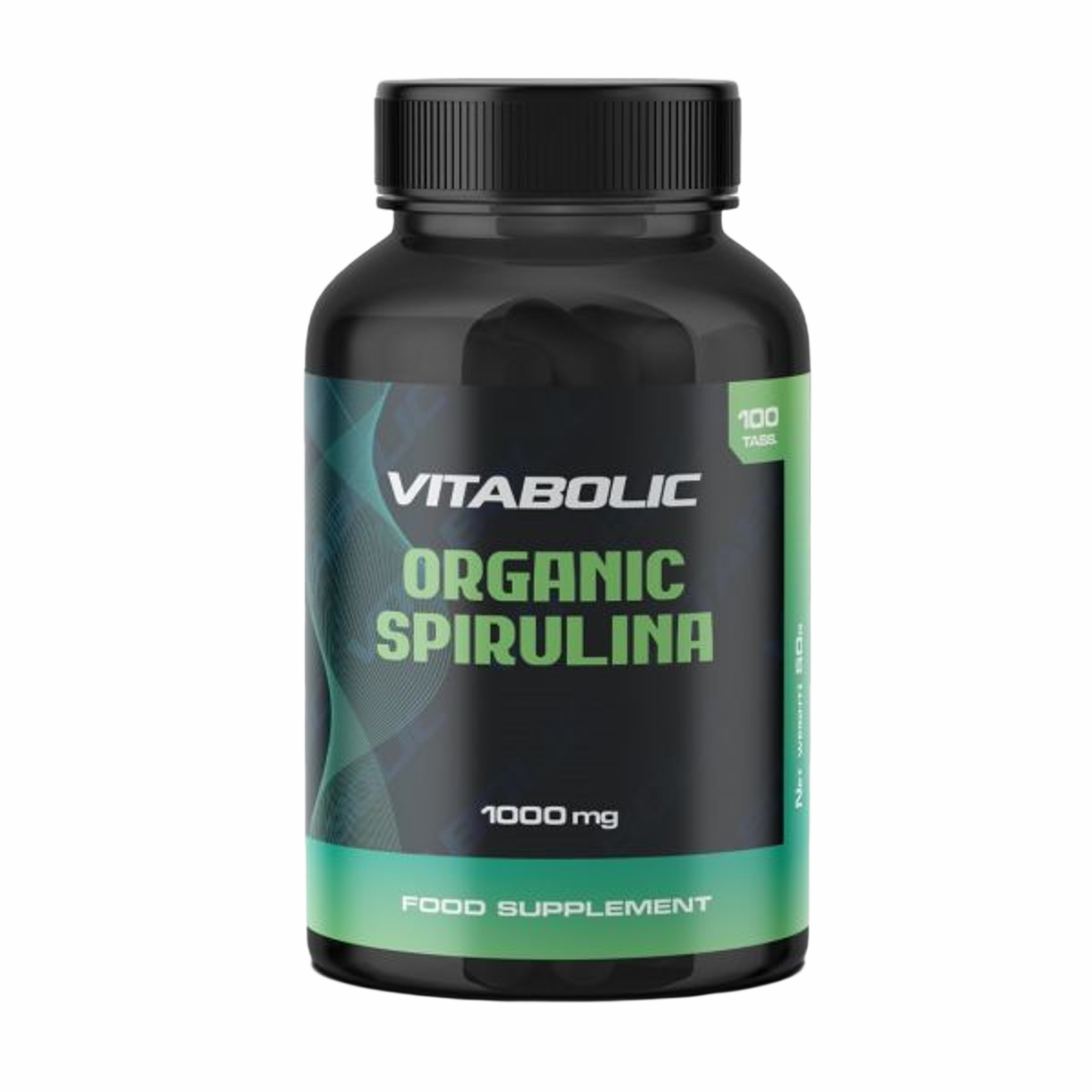 Spirulină organică (Arthrospira platensis) – 1000 mg per tabletă – o cantitate concentrată de superaliment natural cu proteine, micronutrienți și antioxidanți.